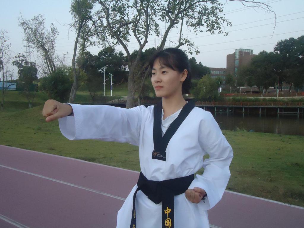 金亚宣在考入信阳学院后,因为热爱跆拳道项目,加入了大学生跆拳道社团和校队,利用课余时间参加训练。有幸能被选入学校跆拳道代表队,在校备战比赛期间,我每天在跑道上奋力奔跑练习体能,成千上百次的重复练习跆拳道腿法,在实战对抗练习中,即使挥汗如雨也咬牙坚持、不曾放弃。金亚宣非始终坚信:一分耕耘一分收获,要想成功,必须努力!