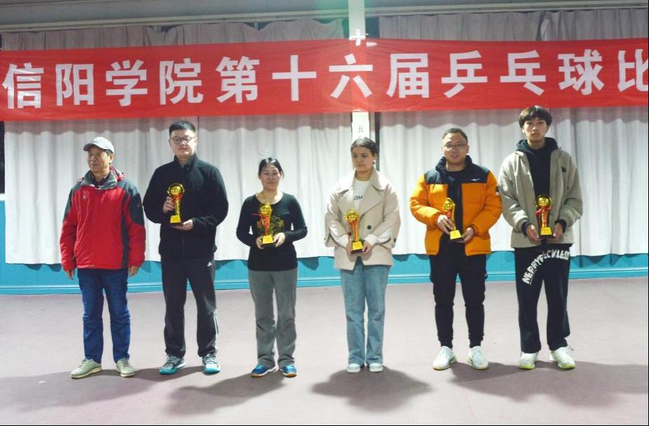 3月24日,信阳学院第十六届乒乓球赛落下帷幕。本届比赛由信阳学院体育运动委员会、校工会主办,公共体育教学部承办。据悉,本次比赛历时4个比赛日,共设置教职工组混合团体、男子单打和女子单打;学生组男子团体、女子团体、男子单打和女子单打,共计7项比赛。有34支学生和教职工代表队、共计214名运动员参赛。