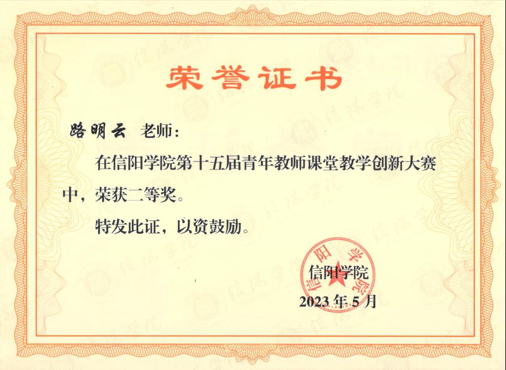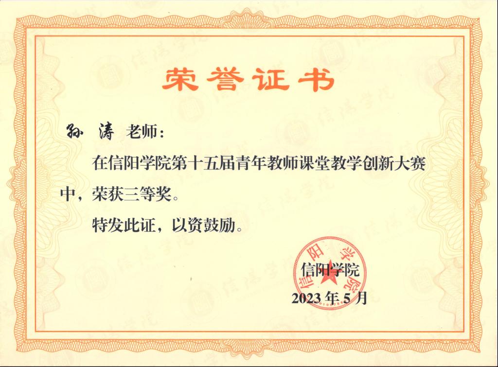 近日,信阳学院“第十五届青年教师课堂教学创新大赛”结果揭晓,公共体育教学部教师在本次大赛中表现优异、成绩突出,其中路明云得二等奖,孙涛、彭康获得三等奖。