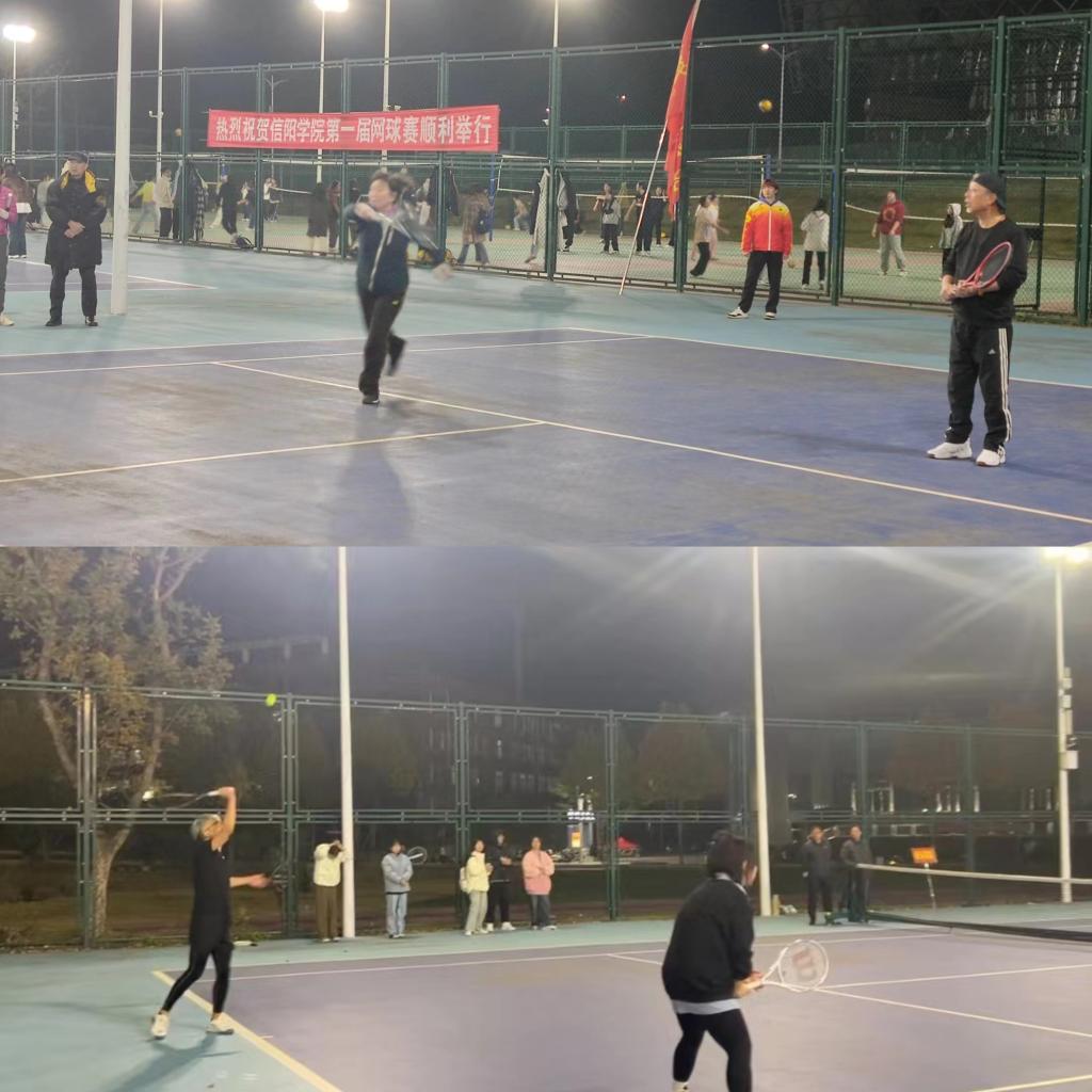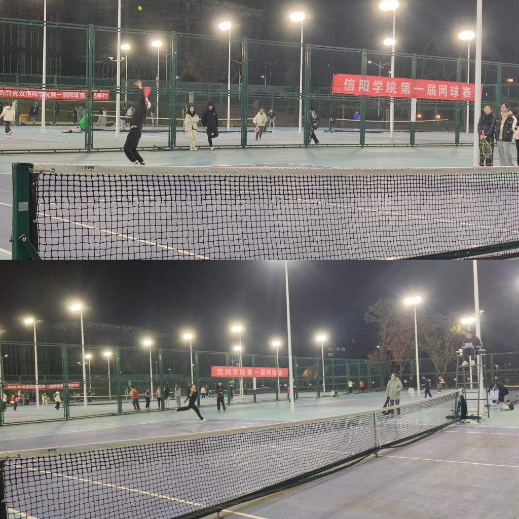 近日,信阳学院第一届网球比赛在校浉河区网球场举行。本次网球比赛由公共体育教学部承办。参赛队伍以学院为单位,设教职工组和学生组,其中教职工组设混合双打和趣味击球,学生组设男、女单打和男、女双打。在紧张激烈的比赛中,选手们用激情与汗水,为荣誉而战,为梦想拼搏。