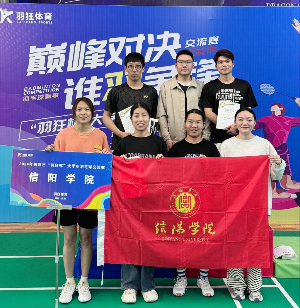 4月20至21日,信阳市第一届“羽狂杯”大学生交流赛在信阳市羽狂体育五环球馆顺利举办,信阳学院羽毛球队共获得两金一银四铜的佳绩。