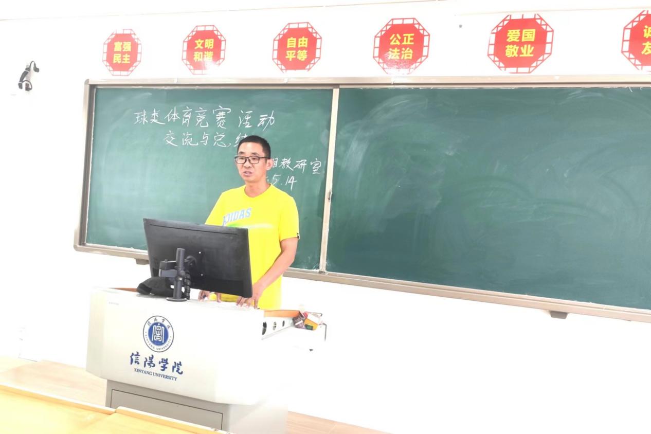 5月14日下午,球类项目教研室举行了以“学校体育竞赛活动组织管理与实践”为主题的教研活动,活动在综合楼606教室举行。球类项目教研室全体教师参加,活动由球类项目教研室主任刘岗生主持,张雷老师主讲。