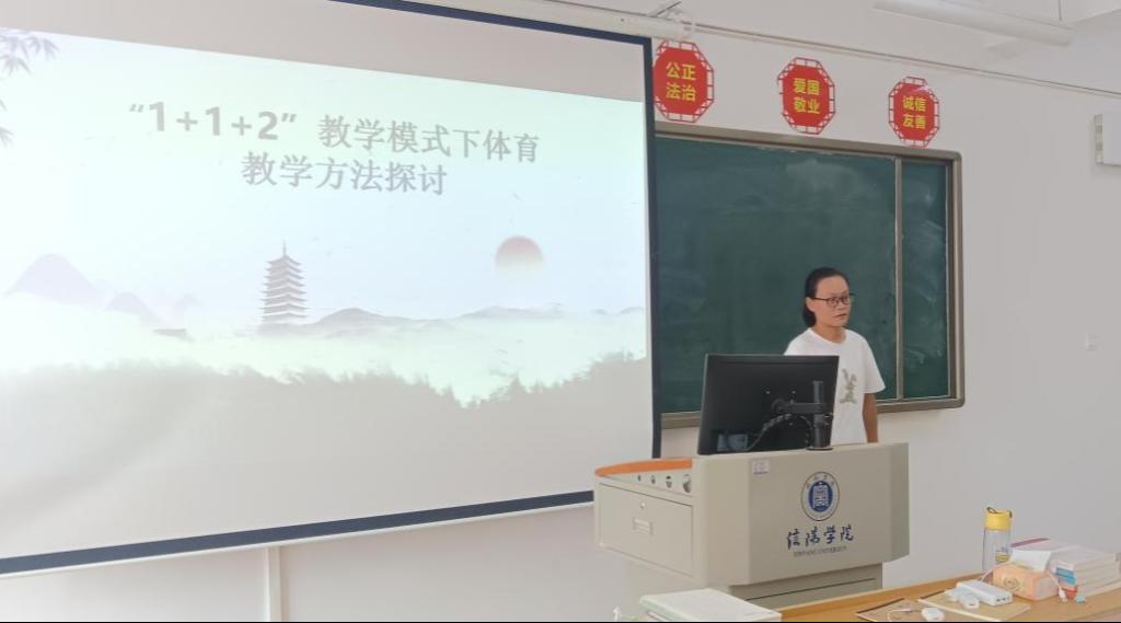 5月21日下午,操舞教研室依据教研活动时间安排,举行了以“1+1+2教学模式下体育教学方法探讨”为主题的教研活动,活动在综合楼603教室举行,活动采用“文化沙龙”形式进行汇报和探讨。操舞教研室全体教师参加,活动由操舞教研室主任剧红梅主持,路明云老师主讲。
