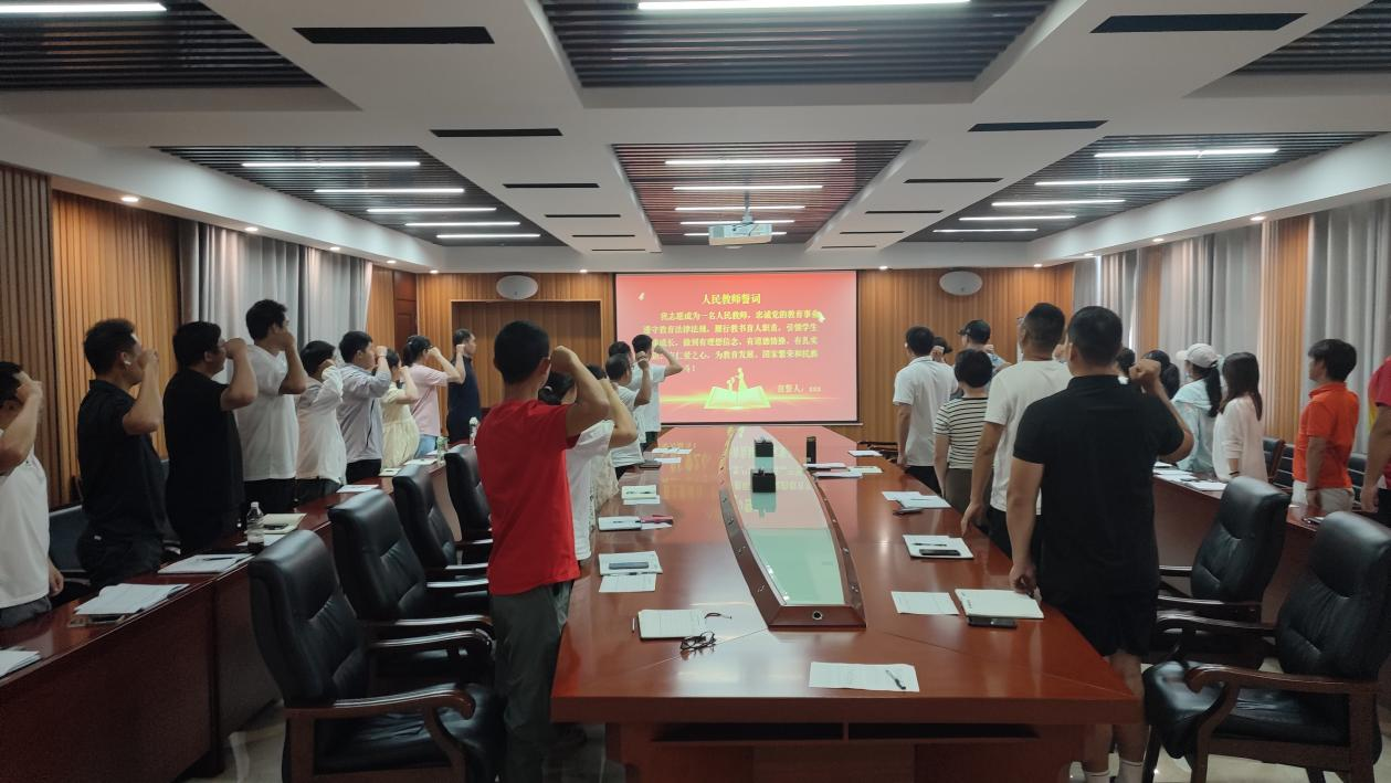 会议伊始,全体教师进行了人民教师誓词宣誓。作为一名教师,要时刻牢记自己的使命和责任,以高尚的师德和扎实的学识教育引导学生,做到言传身教、为人师表。