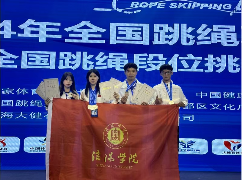 我校在2024年全国跳绳联赛总决赛中取得了3个第二、2个第三、1个第四、1个第五的好成绩。其中李明辉老师以及马家乐、陈晗、洪思彤三位同学都取得了2025年世界跳绳锦标赛的入场券。