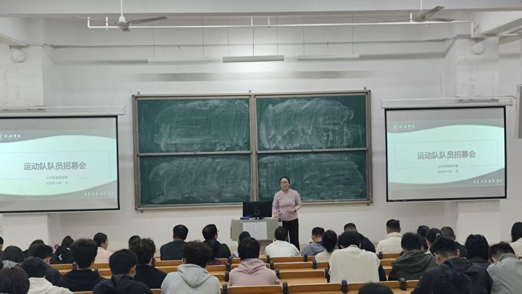 随后,球类教研室主任李利华详细讲解了男篮、女篮、男足、女足、男排、女排、乒乓球队、网球队及羽毛球队的招募标准,逐一介绍了各队教练员的专业背景与执教经验,为同学们选择适合的队伍提供了清晰指引。操舞教研室主任剧红梅则聚焦健美操队、跆拳道队、花样跳绳队、武术队和体育舞蹈队,不仅介绍了各队教练员与队员构成,还通过展示过往赛事荣誉,展现了操舞类队伍的风采与实力,进一步点燃了同学们的报名积极性。