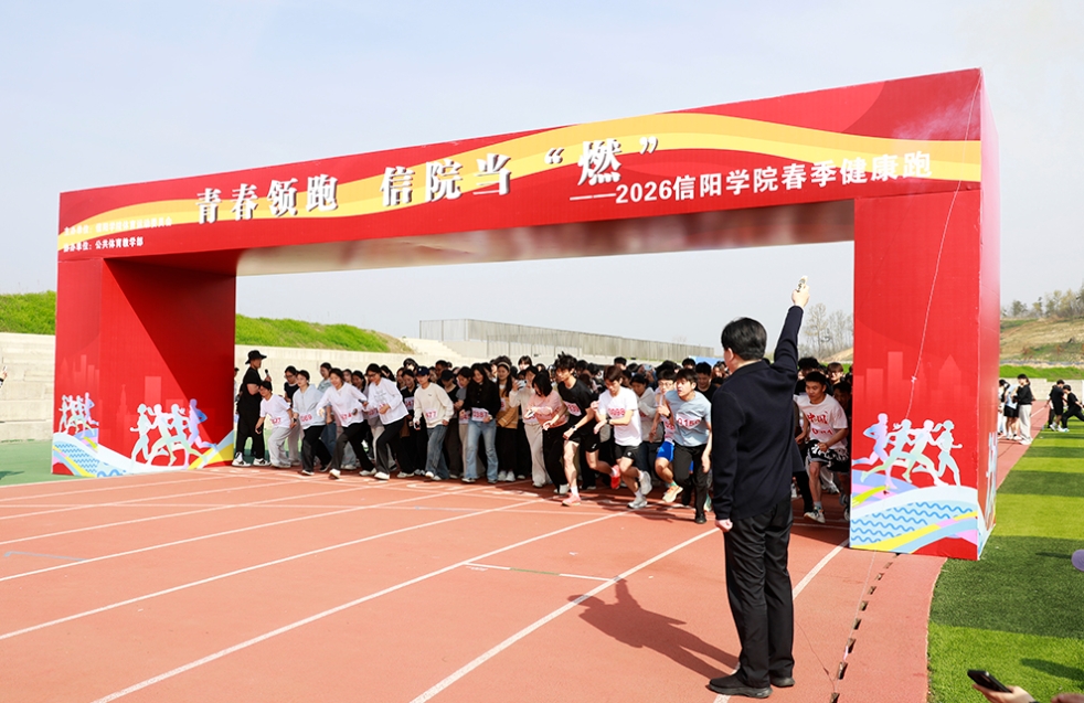 春风送暖,万物向荣。3月28日上午,“青春领跑,信院当‘燃’——2026信阳学院春季健康跑”活动在南湖校区田径场盛大启幕,近600名参赛选手齐聚赛场,以奔跑之姿践行健康理念,尽显昂扬向上的青春风采。本次活动由信阳学院体育运动委员会主办、公共体育教学部协办,旨在深入践行“健康第一”的教育理念,响应教育部“让孩子动起来、跑起来、活动起来,让他们身上有汗、眼里有光”的号召,增强师生身体素质,丰富校园文化生活。