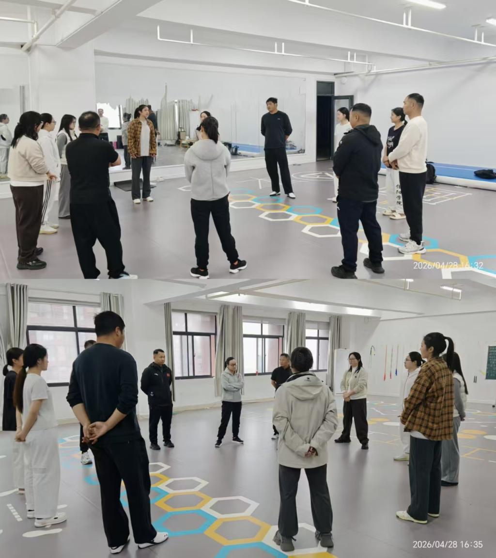 胡蝶老师结合多年跆拳道参赛带队经验,围绕赛前体能训练、团队思想统一、专项技能打磨、运动员心理建设等关键环节,分享了实用且系统的备战方法与实战心得。随后,吴洋、路明云、李明辉、孙冬阳老师依次发言,分别结合健美操、体育舞蹈、花样跳绳、武术项目特点,分享了各项目针对性备战经验与训练技巧。交流环节中,全体教师立足各训练队特色,展开深入研讨,重点梳理了队员选拔标准、参赛队伍管理规范、外出比赛安全保障、运动员激励机制等核心问题,凝聚了备战工作共识,明确了后续训练与参赛工作方向。